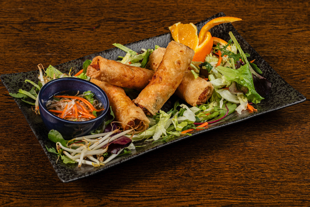 2 Frühlingsrollen gefüllt mit Hühnerfleisch oder Tofu, frischem Salat, Kräutern und leicht scharfer Limettensoße süßsauer … 4,90 EUR