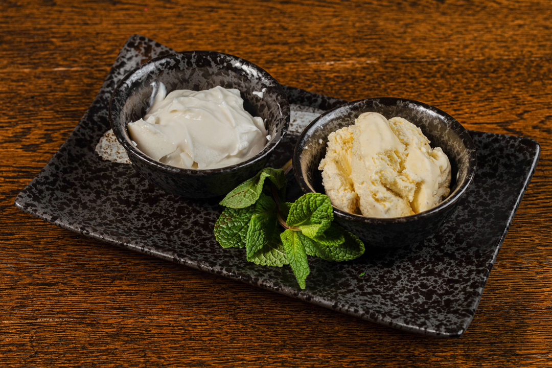 Speiseeis mit Vanillegeschmack, hausgemachte Kokoscrème und Minze … 4,90 EUR